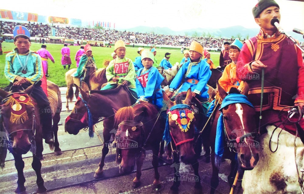 1995 он юм. Газар газрын уяачид Яармагийн дэнжийг дэлгээд буучихсан. Наадмын урьд орой. Цэндийн Чимэддорж бид хоёр манай майханд ирчихсэн, айраг шимэнгээ морьд харсан шээг жаргацгааж суув. Аав маань уяан дээрээ. Хүрэн морь маань дөрвөлжилчихсөн, ирлэчихжээ. Орой явах болсон Чимэддорж аавд гэнэт хэлдэг юм. “Маргааш хүүхэд нь ойчихгүй л бол хүрэн морь түрүүлнэ” гэж. Санаанд ч орсонгүй. Их нас мордлоо. Бид хэд Айдас дээр ирэхийг хүлээж байв. Бид гэдэг маань Чимээ, Шагаа ах, жолооч Адъяа гээд радиогийн морины хэдэн сурвалжлагч. Их нас эргэчихжээ, бөөн тоо. Айдас дээр эхний хэдэн морь гарч ирэхээр нь зүс хүүхдийн дугаарыг нь сайн тогтоож аваад л хөдөлдөг улс. Жилийн жилд хэдэн зуун алтан тууртыг Айдас дээр хөтлөөд шараад ирдэг анжай байнаа байна. Тэр цээжний хэдэд хүрэн морь багтаад гарч ирнэ. Би дүүдээ захиасаа хэлчихдэг. Тэгээд хөдлөхгүй бол Айдасын уруу, Алдар толгой хүргээтэхвэл хөтөлж яваа морьдыг гүйцэхгүй, алдчихна. Гэтэл тэр жил хүрэн морь цээжний хэдэд алга. 20, 30-д байдаггүй дээ. Гэтэл гөлөм нь дэрэвчихсэн жолоо нь буучихсан, танихын аргагүй тоостой хажуугаар өнгөрдөг байгаа. Юун тэр радиогийн шууд сурвалжлага хийх, юун наадмын мэдээ шуурхай дамжуулах, эмнэлгийн тэрэг рүү давхисан. Харин Хоохоо маань /Ц.Цэдэндаш/ зүв зүгээр байсанд сая нэг сэтгэл амарч билээ. Саяхан Ц.Цэдэндаш маань “Тэр зун хүрэн морь их хурдан байсан их сунгаагаар Өндөр довд сунгахад саахалтын хэрээтэй түрүүлсэн. Тэгэхэд Баян-Өнжүүлээс улсын наадамд уралдахаар ирсэн нагац ах М.Дашзэвэг хүрэн морины давхилыг хараад толгой сэгсрэн шагширч билээ. Наадмын өглөө их морь мордоход Цэрэнжамц ах маань: “Энэ жил морин тойруулгын Хээр халзантай л уралдана шүү! Миний хүү их битгий уралцуулаарай, хондлой дээр нь дараад байгаарай, гараад явахаар бол явуулаарай! гэж захисан юм. Тэр их тоостой байсан болохоор л эргээд л бөөн тоосонд морьд давхралдан унахад би бас ойчоод, тэгээд хүрэн морины хөл нь жолоо нь орооцолдоод 75-д давхисан. Тэр жилийн намар Жаргалантын аманд зохиогдсон Цагаан шонхорын наадамд гарсан цагаасаа магнайдаа тоосгүй явсаар түрүүлсэн” гэж ярьсан. Анхны “Их хурд”-ын жил уяа нь ханасан байсан даа. Бас л хүүхэд нь хийсчихсэн. Хөлд нь жолоо орооцолдсон ирсэн. Их нас дагасан улс эргээд жаахан яваад цэээжинд гарч ирээд л хүүхэд нь уначихсан гэлцэж байсан. Уул нь манай галынхан айргийн тавд багтааж байсан юм шүү. Миний аав уяачийн эдэлдэг баярлах харамсахыг бүгдийг туулсан амьтныг хайрлах морийг сойхын эрдэм төгс, адууны хэлийг мэддэг байх гэмээр хурдан моринд зүрх, сэтгэлээ өгсөн хүн байсан юм. Аавын минь “Хандгай” хүрнийг тэр жил Төв аймгийн Баянцагаан сумын наадам дээрээс муу хүн хулгайлчихсан юм. Хархорины “Их хурд”-д уралдаад очсон давхар уяаны морийг аавыг минь майхандаа ороод ирэхийн зуур авчихсан байсан шүү. Хөгийн новшнууд. Тэр дороо эрээд, тэр шөнөжин эрээд, наадмын хэд хоног эрээд хэдэн сараар эрээд олоогүй юмдаг.
