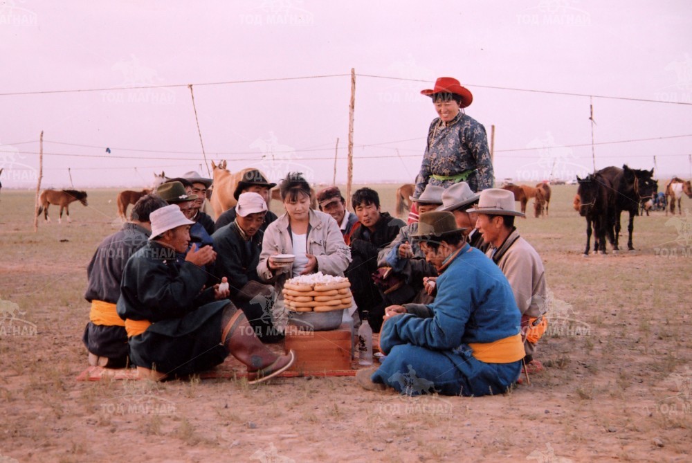 Ингэхэд эдний наадам өглөө хэрхэн эхэлдэг юм бол гэсэн дэггүй асуулт хариулт нэхээд амраадаггүй. Асууж орхивол “Морь гарахаас өмнө эртлэн босож цайныхаа дээжийг очсон газрынхаа хангай дэлхийд өргөнө. Мэдээж сэтгэлдээ олон зүйлийг хүснэ шүү дээ. Уяж ирсэн морь, унаж уралдах хүүхдүүдийг минь эсэн мэнд явуулж хайрла” гээд л эхэлнэ дээ. Тэгээд уралдахаар гарч байгаа морь, хүүхдийнхээ араас сүүнийхээ дээжийг өргөж, залбирна. Адуугаа манаад ирж байгаад улсдаа цай ундыг нь бэлтгэж тавина. “Хэт халуун дээж өргөдөггүй гэдэг. Жаахан зөөтгөсөн маягтай байна шүү” гэх нь залуу эзэгтэй нарт мэдэхэд илүүдэхгүй санагдсан юм. Орон нутгаасаа хол явбал бараан цайгаа чаначихаад цагаан идээгээ үйрүүлж хийгээд л өргөчихдөг юм. За тэгээд морь давхиад ирэхэд сайхан шүү дээ. Адуу гэдэг амьтан сэтгэлээ өгсөн бүхний хийморийг өөдөө бадрааж байдаг сайхан амьтан. Би адуунд хайртай. Бага байхад аав морь мал уяж байгаагүй ч олон жил адуу малласан. Би чинь хоёрдугаар ангийн жаахан охин байхдаа л гүү саадаг байлаа. Мэдээж номхныг нь би саана. Арай хэцүүг нь ээж минь саадаг сан. Магадгүй энэ бүхэн өнөөдрийн хувь тавилангийн маань эхлэл байсан мэт санагддаг л юм гэнэ. Эрдэнэчулуун Манлай бол Дундговь аймгаас төрсөн цөөхөн Манлайн нэг бөгөөд энэ цаг үедээ одтой наадагсдын нэг билээ. Уяачдын хувьд адуу намайг олонтой болгосон хэмээн ярьдаг даа. Түүн шиг гэрийн эзэгтэйг ч нутаг оронд нь мэдэхгүй хүнгүй байх бөгөөд ихэд хүндэтгэлтэй хандах нь үдлээд буцахад л мэдрэгдсэн юм.