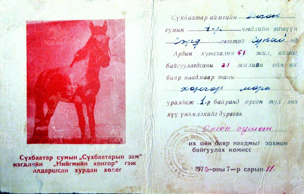 Ардын хувьсгалын 57 жилийн ой, Онгон сумын баяр наадмын зургаан насны морьдын 30 айраг, түрүүний зургааг нь дуудах овог нэгт ах дүүс хүртэцгээсэн байдаг. Тодруулбаас, Сэр-Одын хэмээн овоглогддог дөрвөн уяачийн гурав нь сумынхаа баяр наадмын зургаан айргийг тэр жил хуваан хүртэж, дээдсийнхээ алдрыг мандуулж, дэргэдэх нөхдөө цэнгүүлжээ. Энэ наадмын хурдан азарганы уралдаанд Сэр-Одын Сунайндагвын ухаа аман хүзүүдэж, Сэр-Одын Дашгүнжингийн буган гуравласан бол уяачийн эрдэм ухаан, авьяас билгийг сорьдог их насны морьдын уралдаанд С.Сунайндагвын хээр гуравлаж, С.Буяндэлгэрийн хээр дөрөвлөж, С.Дашгүнжингийн цагаан тавлан хэр чансааг нь илтгэжээ. Харин хязаалангийн уралдаанд С.Дашгүнжин уяачийн хөнгөрүүлж сойсон ухаа үрээ айргийн тавд хурдлан их асрын өмнө алдар цолыг нь дуудуулсан аж. Ийнхүү нэгэн голомтны уяачид хүлгийн хийморь, уяачийн эрдмээр илүүрхсэн удаатай.