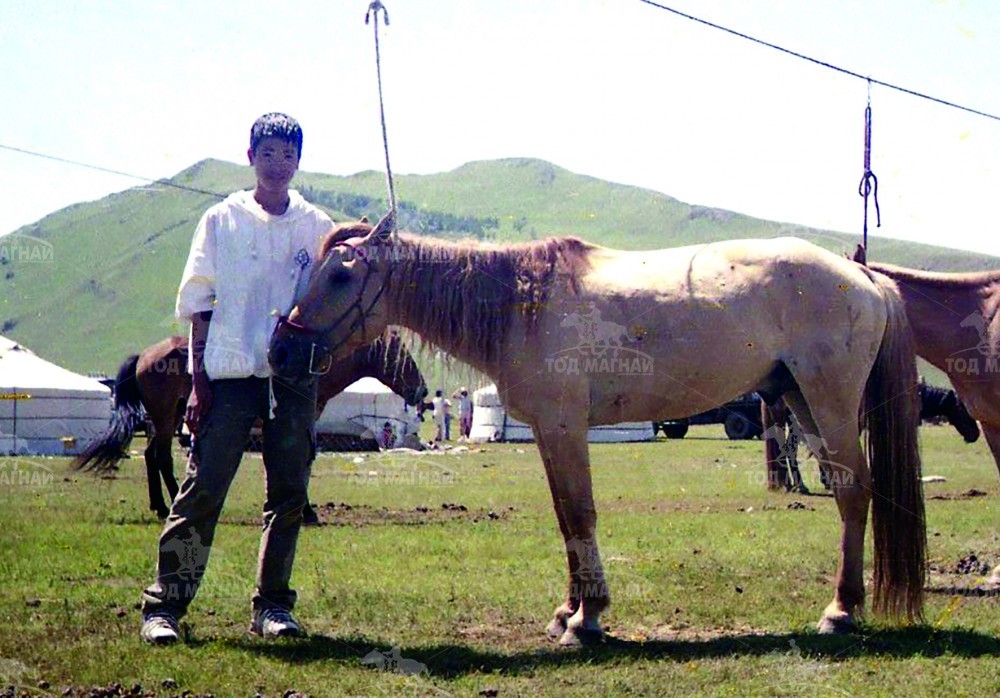 Тавтайгаас хойш хоёр жил хэртэй хурдны морь унаад хасагдах нь тэр. Нагац ах аймгийн Алдарт уяач Д.Отгонбаяр эмээ, өвөөтэй нь хамт амьдарна. Ах бол хотын гийчинг хаа нэг хурга ишгэнд явуулна. Адууны тухайд бол шинэхэн уралдаанч болохоор тэр бүр дөхүүлэхгүй. Тэгсэн нэг өглөө ах нь зэргэлдээх айлуудаар орж гараад л завгүй яваа бололтой. Эмээгээсээ “Ах яасан юм” гэж асуувал “Эмээл хайгаад байх шиг байна” гэж. Тэгж хагас цаг хэртэй явж ирснээ хүүд “Эмээл олдохгүй нь чи морд” гэдэг байгаа. Айх гайхах зэрэгцээд ахин лавлавал “Морь тарлах гэтэл хурдан морины хүүхэд алга, эмээл ч алга” гэснээс олныг нуршсангүй. Хүүгийн дуртай, дургүйг ч асуусангүй. Шууд л морин соёолонгийн нуруун дээр тавьчих нь тэр.