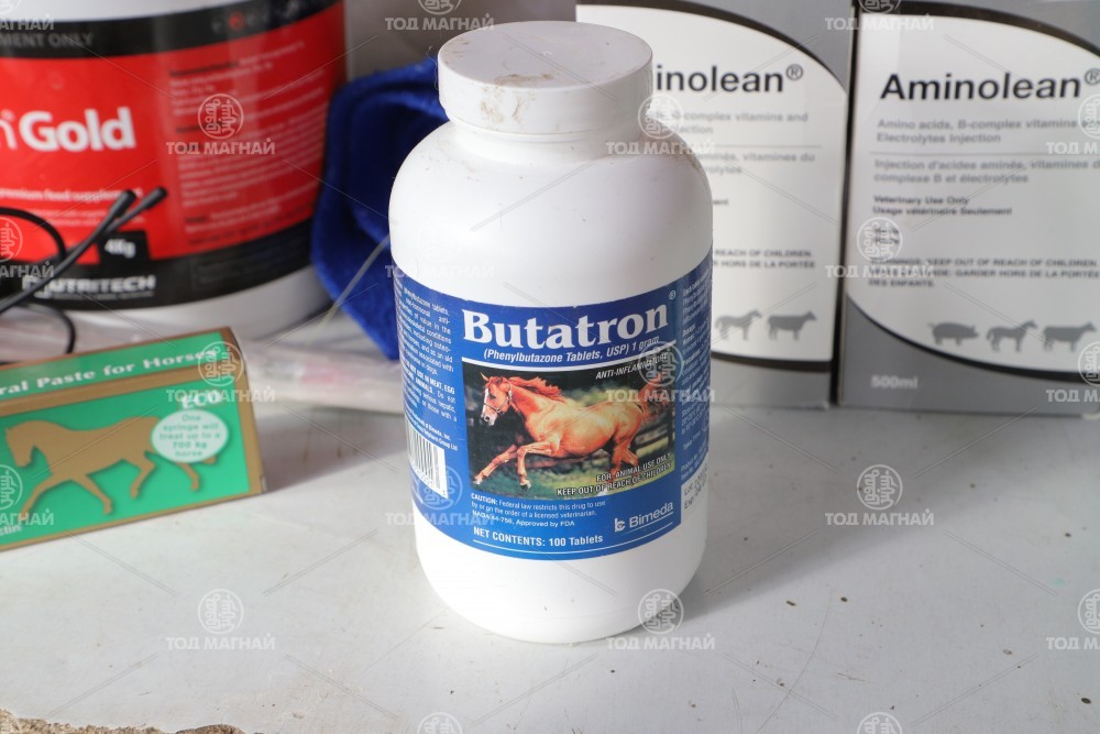 -Фенилбютазон нь дааврын бус гаралтай өвдөлт намдаах, үрэвслийн эсрэг үйлчилгээтэй бэлдмэлийг амаар өгнө. Адуунд биеийн жингийн 250 кг тутамд 1-2 гр (1-2 ширхэг)-р дотуур олгоно. Өдөрт 4 гр-с хэтрүүлэн олгож болохгүй.